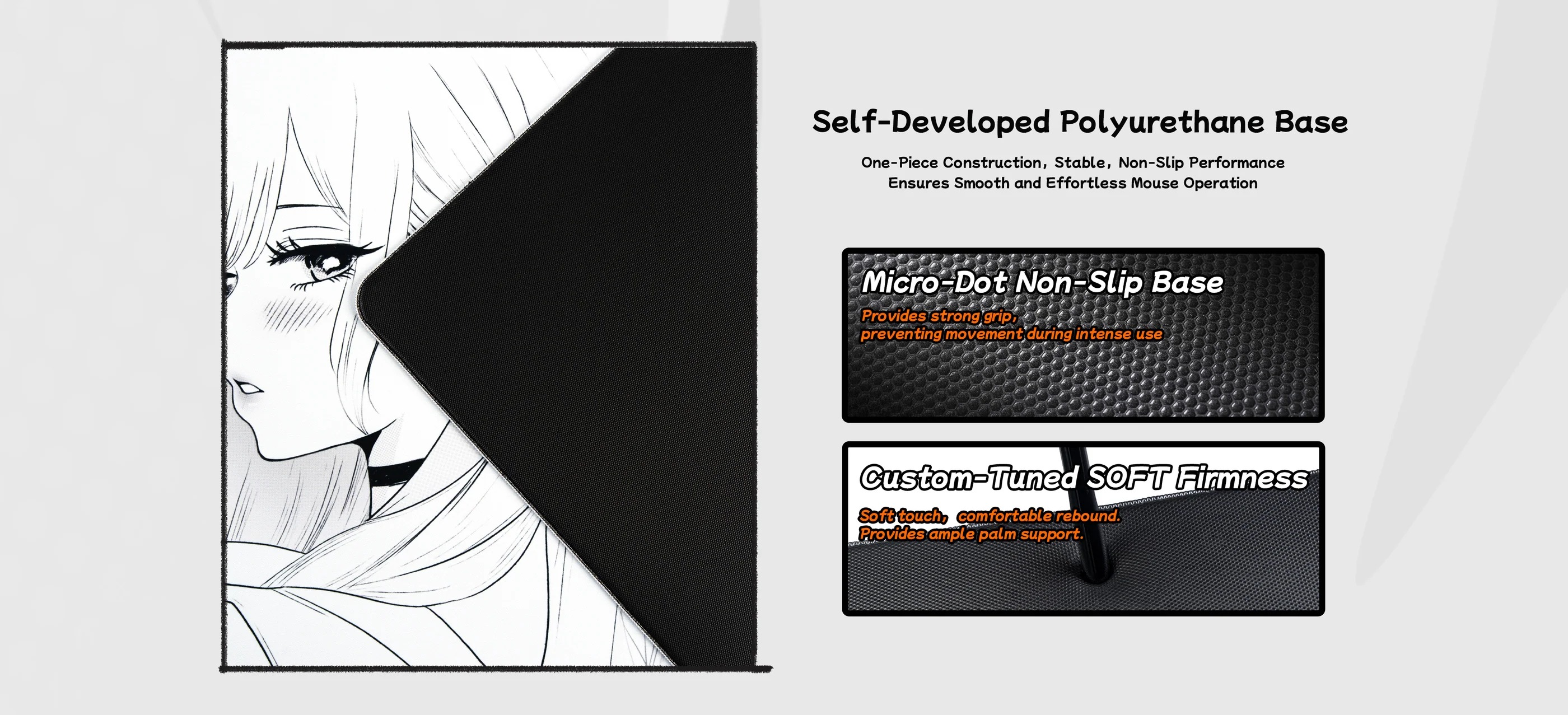 Họa tiết anime girl Reverie full color sống động, theme dreamy reverie huyền ảo. Đáy cao su chống trượt 360° đảm bảo ổn định trên bàn, chống mòn và biến dạng.