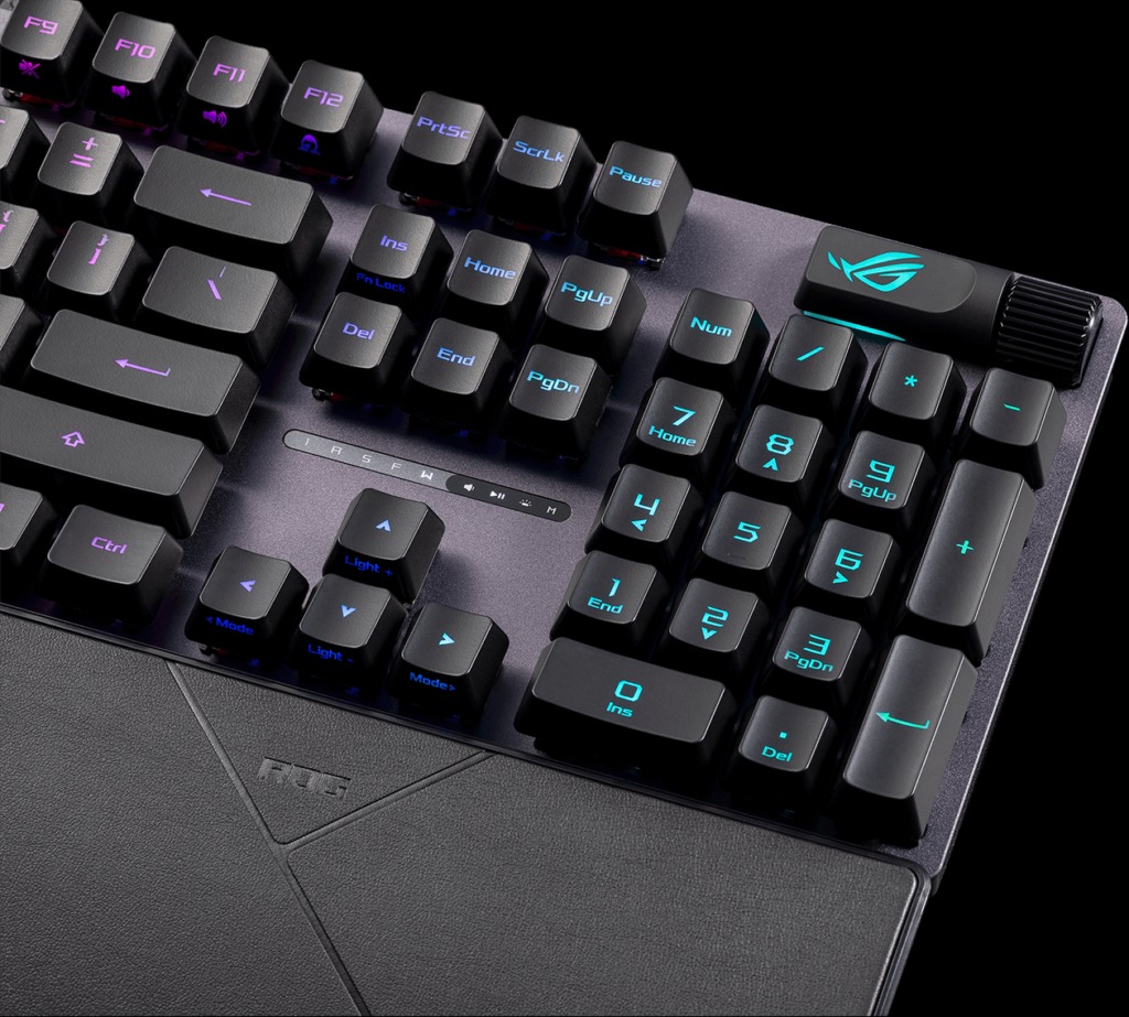 Các công tắc quang học ROG RX Red và RX Blue được tưới dầu trước cung cấp các lần nhấn phím ổn định không rung và thời gian phản hồi siêu nhanh 1 ms cùng tuổi thọ 100 triệu lần nhấn phím. Những công tắc cao cấp này có thiết kế thân vuông rỗng và đèn LED RGB tích hợp tạo ra ánh sáng xung quanh từng phím.