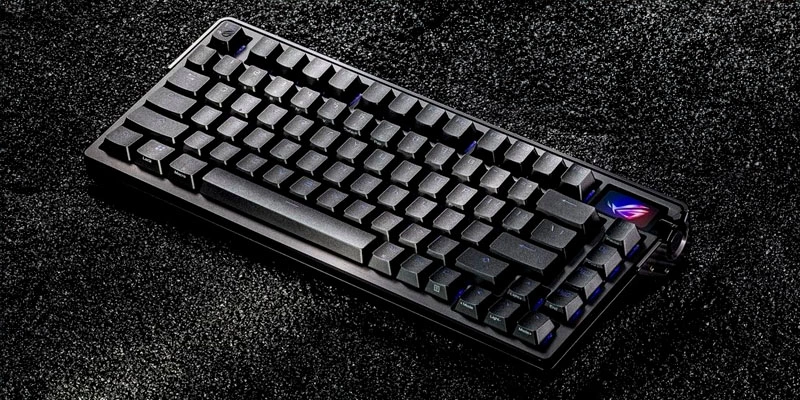 RGB per-key 16 triệu màu south-facing tùy chỉnh qua Armoury Crate, OLED display hiển thị thông tin thời gian, battery, profile, animation tùy chỉnh. Keycap PBT double-shot profile Cherry bền đẹp, chống phai chữ.