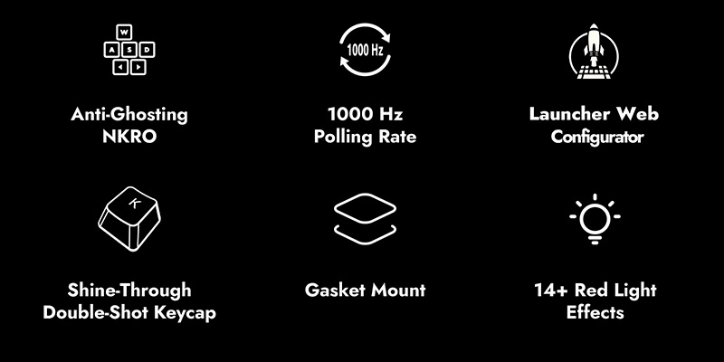 Hệ thống đèn nền đỏ được thiết kế tinh tế, mang lại vẻ đẹp đặc biệt cho bàn phím và hỗ trợ người dùng dễ dàng thao tác trong môi trường thiếu sáng. Đèn nền không chỉ giúp tăng tính thẩm mỹ mà còn giúp bạn duy trì sự tập trung trong công việc hay các trận đấu căng thẳng.