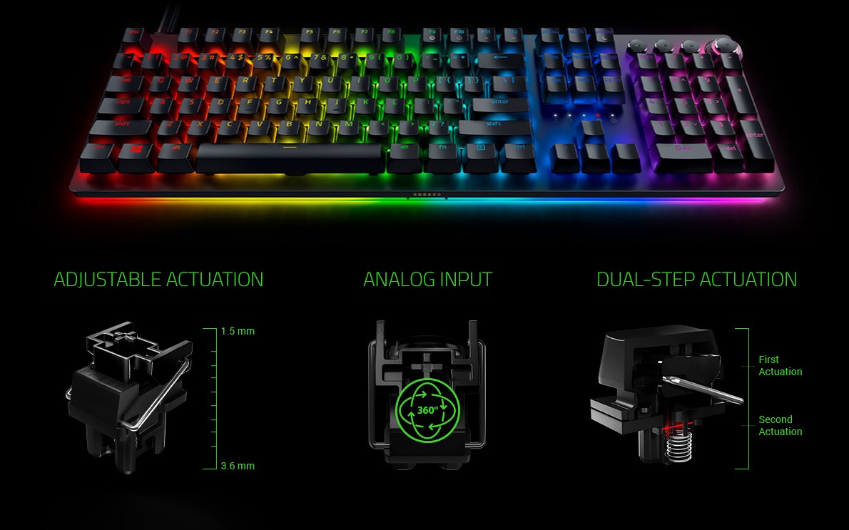 Với khả năng kích hoạt kép, một lần nhấn phím có thể khởi động hai chức năng được lập trình tại hai điểm ghi nhận tín hiệu khác nhau. Về cơ bản, công nghệ này cung cấp gấp đôi chức năng cho mỗi lần gõ phím và phù hợp để tiến hành các combo nâng cao trong trò chơi – ví dụ như rút và ném lựu đạn trong cùng một lần nhấn phím.