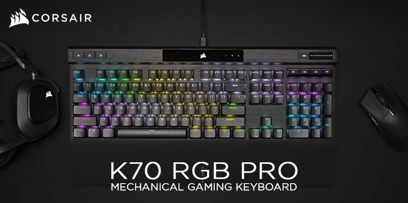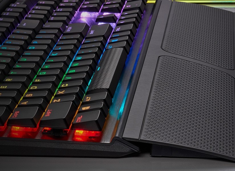 Corsair K70 RGB PRO được trang bị PBT double-shot keycaps, hai lớp foam cách âm, và kê tay từ tính, mang lại độ bền và trải nghiệm gõ thoải mái.