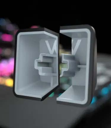 PBT double-shot keycaps: Bền, chống mòn, chống bám dầu, xuyên LED đều, mang lại cảm giác gõ cao cấp.