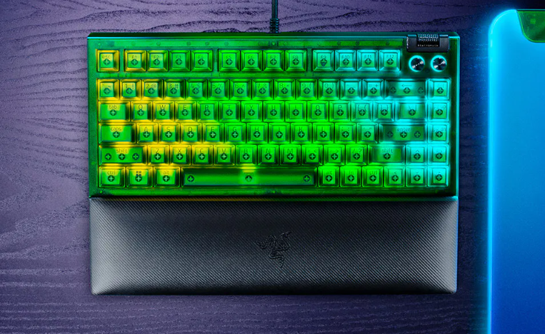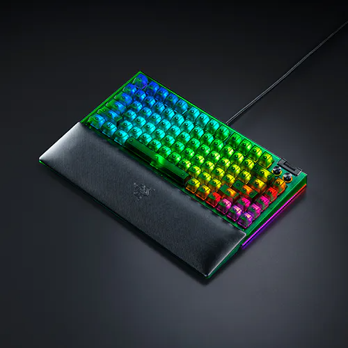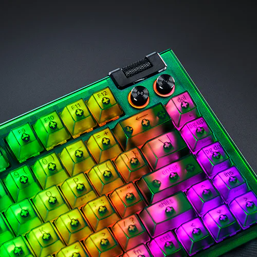 Razer BlackWidow V4 75% Phantom Green sở hữu lớp vỏ và keycap trong suốt, giúp ánh sáng từ hệ thống Razer Chroma RGB tỏa sáng rực rỡ hơn bao giờ hết.