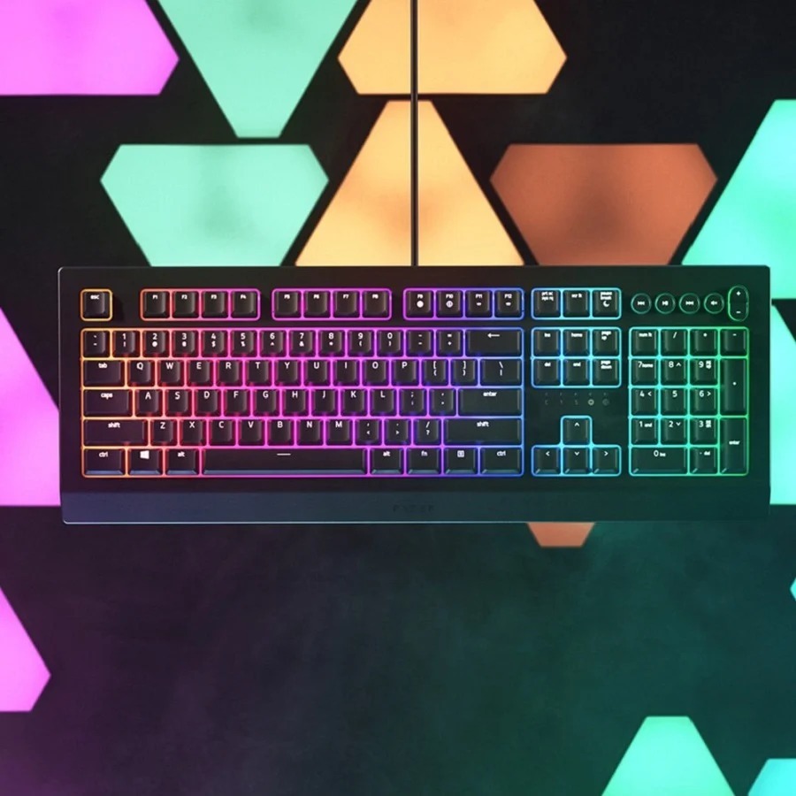 Razer Cynosa V2 Chroma là một trong những dòng sản phẩm bàn phím giả cơ sử dụng keycap được làm bằng nhựa ABS. Từng phím được gắn hệ thống chiếu sáng RGB cao cấp, những lần gõ cũng êm và yên tĩnh khi có đệm mang đến sự thoải mái cho những ai không thích tiếng gõ ồn ào.