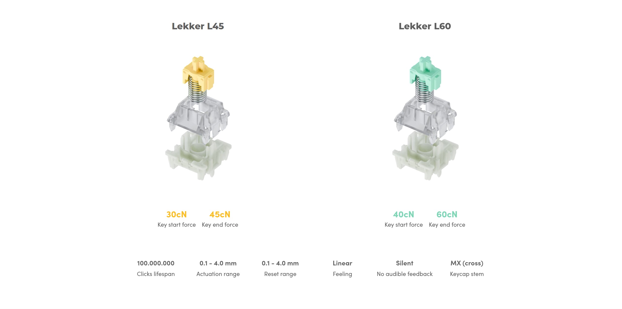 | Tương thích | Lekker switches, Gateron KS-20 switches |