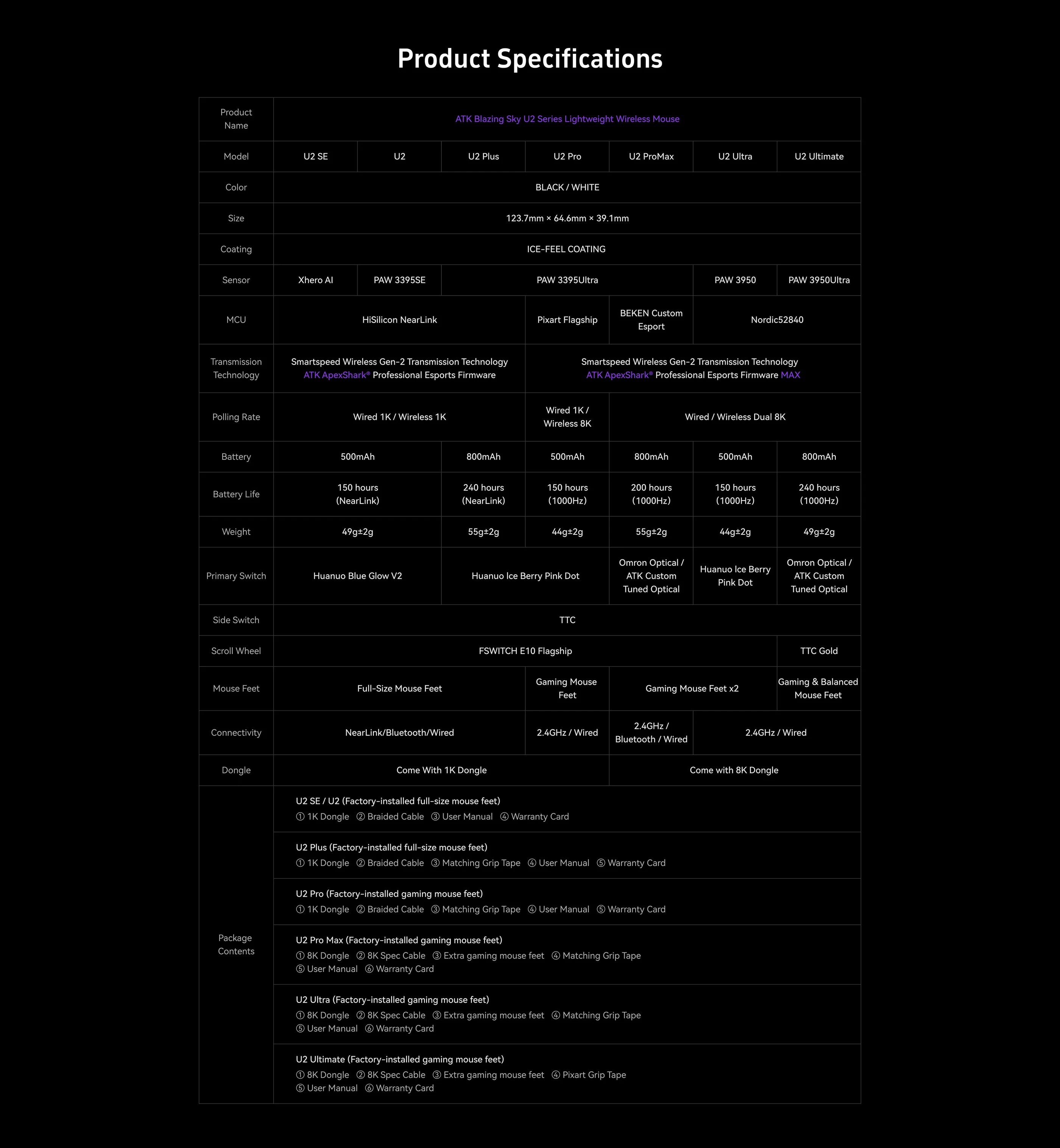 ATK Blazing Sky U2 là chuột không dây siêu nhẹ hoàn hảo, kết hợp sensor đỉnh cao, polling rate cao và trọng lượng 39g. Đây là lựa chọn lý tưởng cho game thủ FPS muốn hiệu suất đỉnh cao và di động tối ưu.