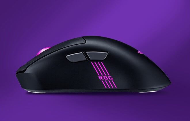 Công tắc ROG Micro Switches II mang lại cảm giác nhấn sắc nét, phản hồi tức thời và tuổi thọ lên đến 100 triệu lần nhấn. Thiết kế ROG Push-Fit Switch Socket II cho phép thay đổi công tắc dễ dàng, tùy chỉnh theo sở thích cá nhân.