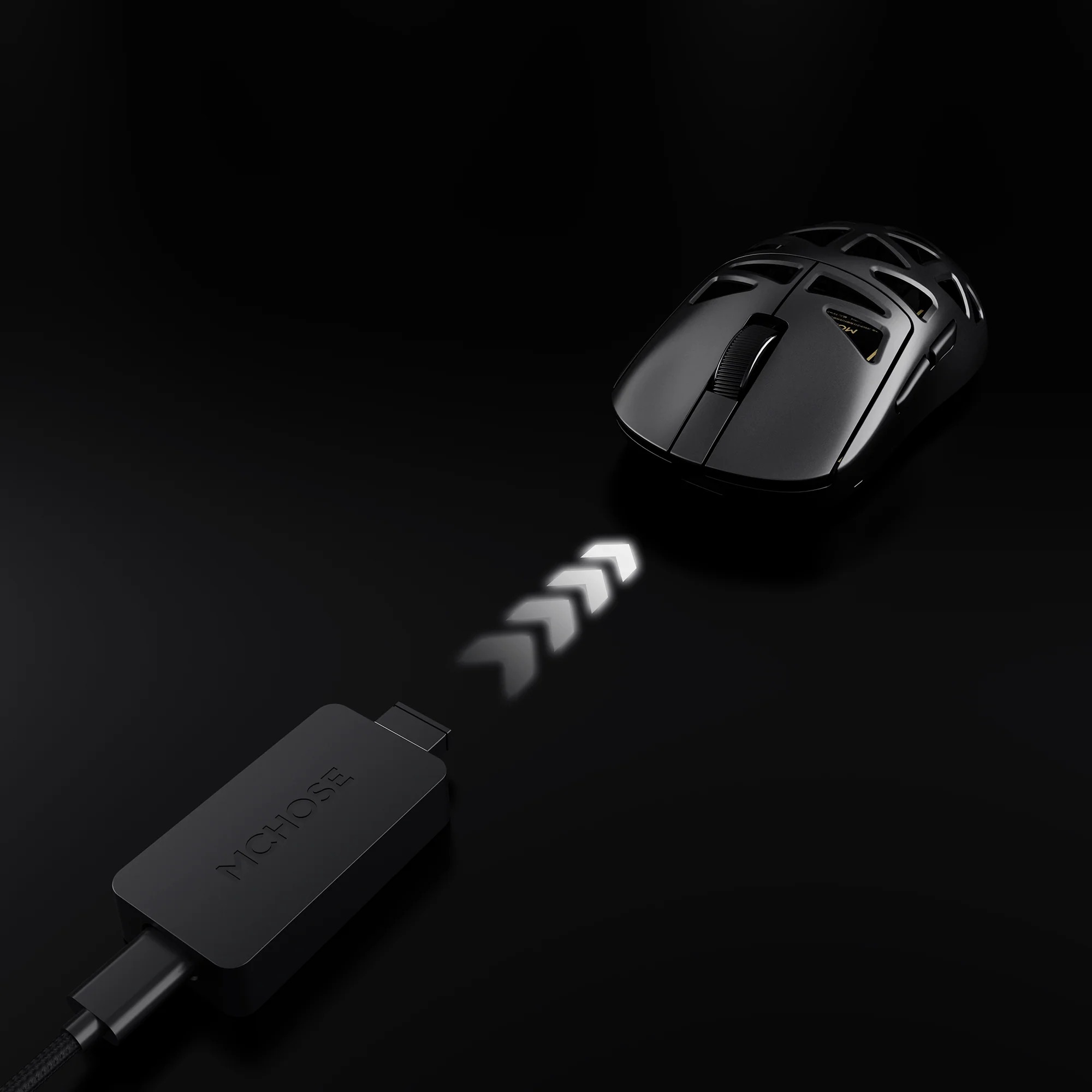 Skates PTFE 100% mịn màng cho cloth/glass pad, LOD điều chỉnh. Đi kèm grip tape, extra skates, dongle 8K, phần mềm MCHOSE tùy chỉnh DPI, polling, macro.