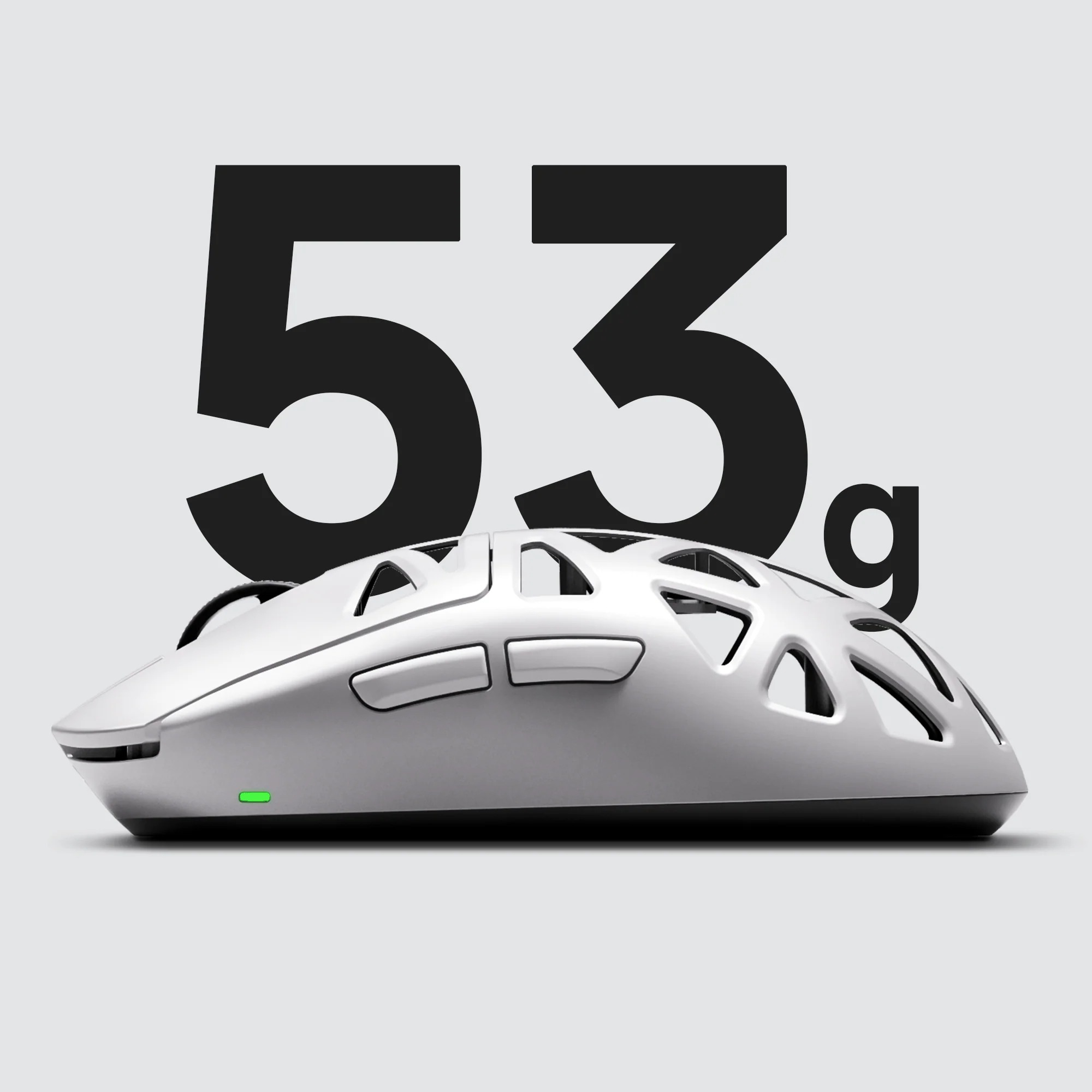 Sensor PixArt PAW3950 flagship với 30.000 DPI, 750 IPS, 50G acceleration. Polling rate native 8KHz không dây (0.125ms), motion sync, giảm độ trễ tối đa cho FPS như CS2, Valorant, Apex Legends.