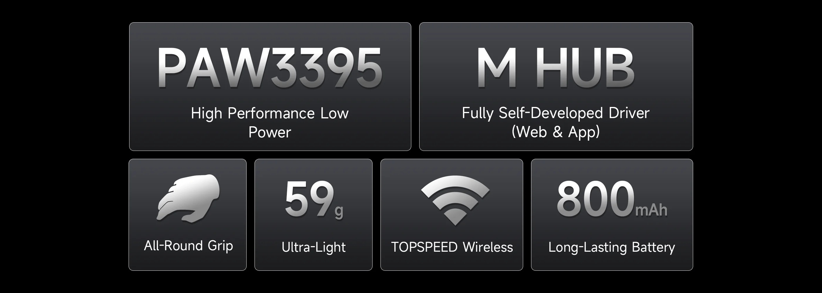 | Sensor | PixArt PAW3395 (26K DPI, 650 IPS, 50G) |