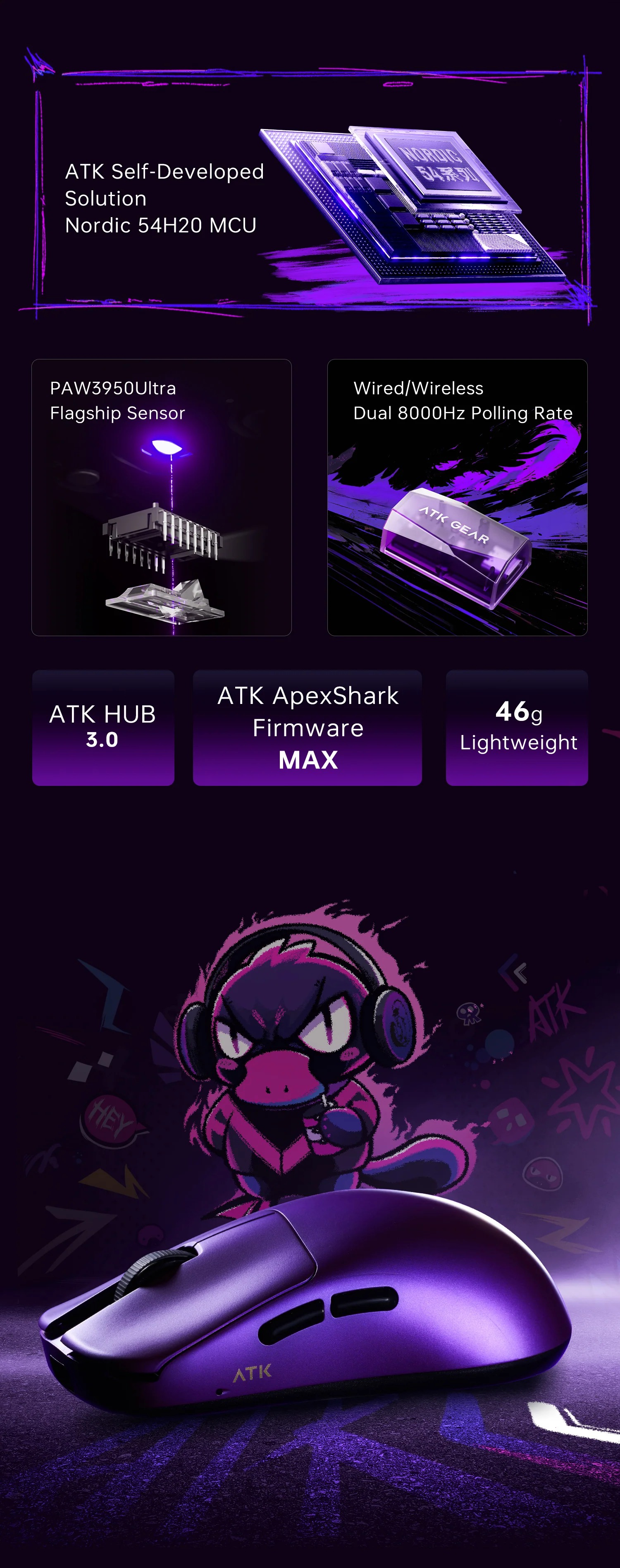 ATK Blazing Sky Duckbill không chỉ là chuột gaming mà còn là biểu tượng phong cách với thiết kế duckbill ergonomics. Với trọng lượng siêu nhẹ, cảm biến đỉnh cao và kết nối ổn định, sản phẩm này giúp bạn kiểm soát hoàn hảo trong mọi trận đấu, từ casual đến competitive.