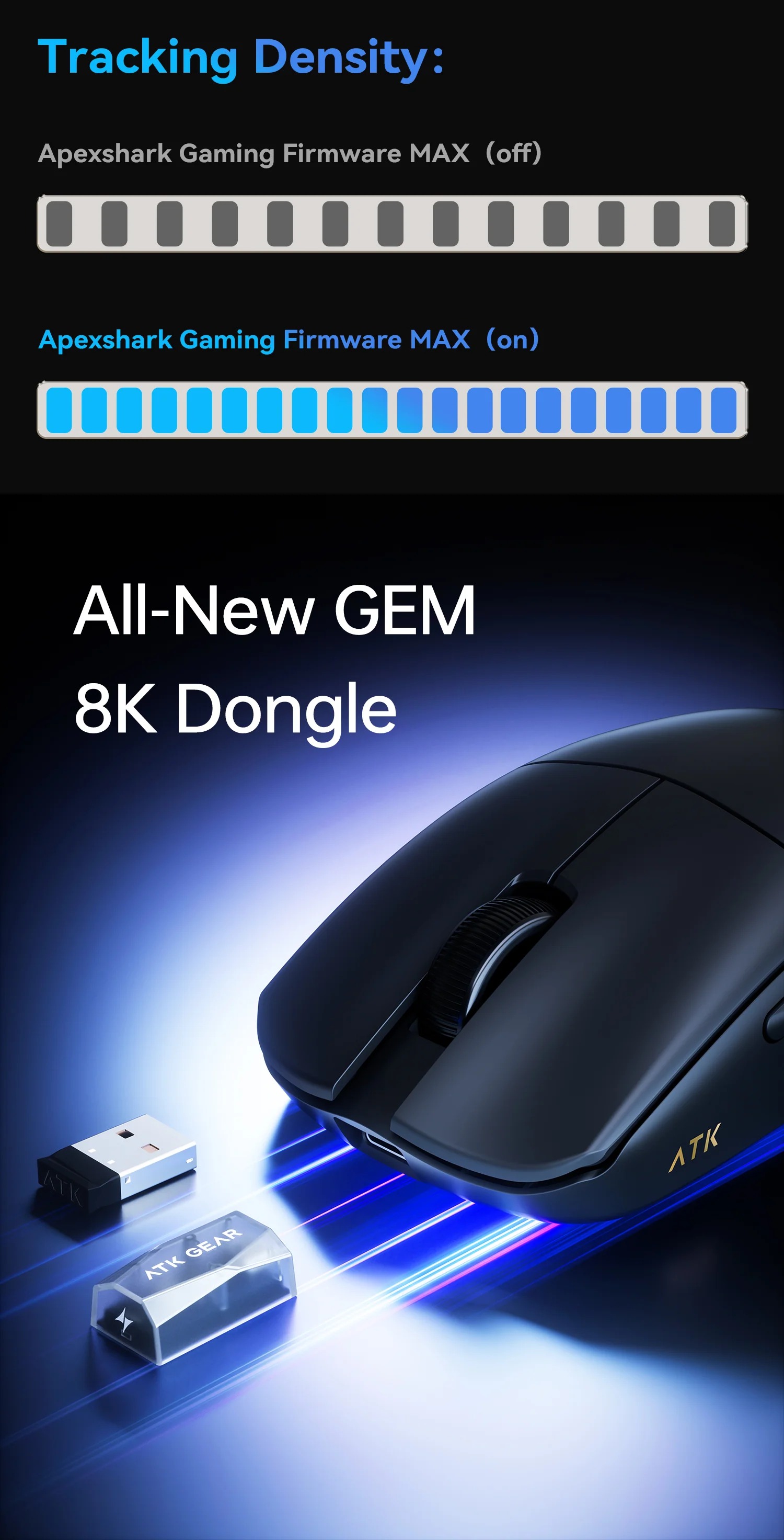 Polling rate lên đến 8000Hz qua dongle GEM mới đảm bảo độ trễ dưới 0.125ms, tương đương kết nối có dây. Chỉ hỗ trợ kết nối không dây 2.4G ổn định và kết nối dây USB-C, không có Bluetooth, tập trung tối ưu cho gaming chuyên nghiệp.