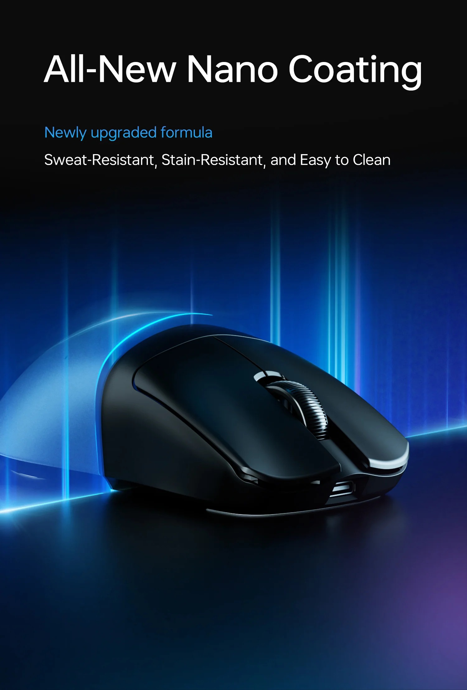 Trọng lượng siêu nhẹ chỉ khoảng 35g, phù hợp tay claw grip. Vỏ nhựa cao cấp phủ matte chống trượt, có 4 màu sắc: đen, trắng, hồng, xanh dương, mang lại sự lựa chọn phong cách cho setup gaming.