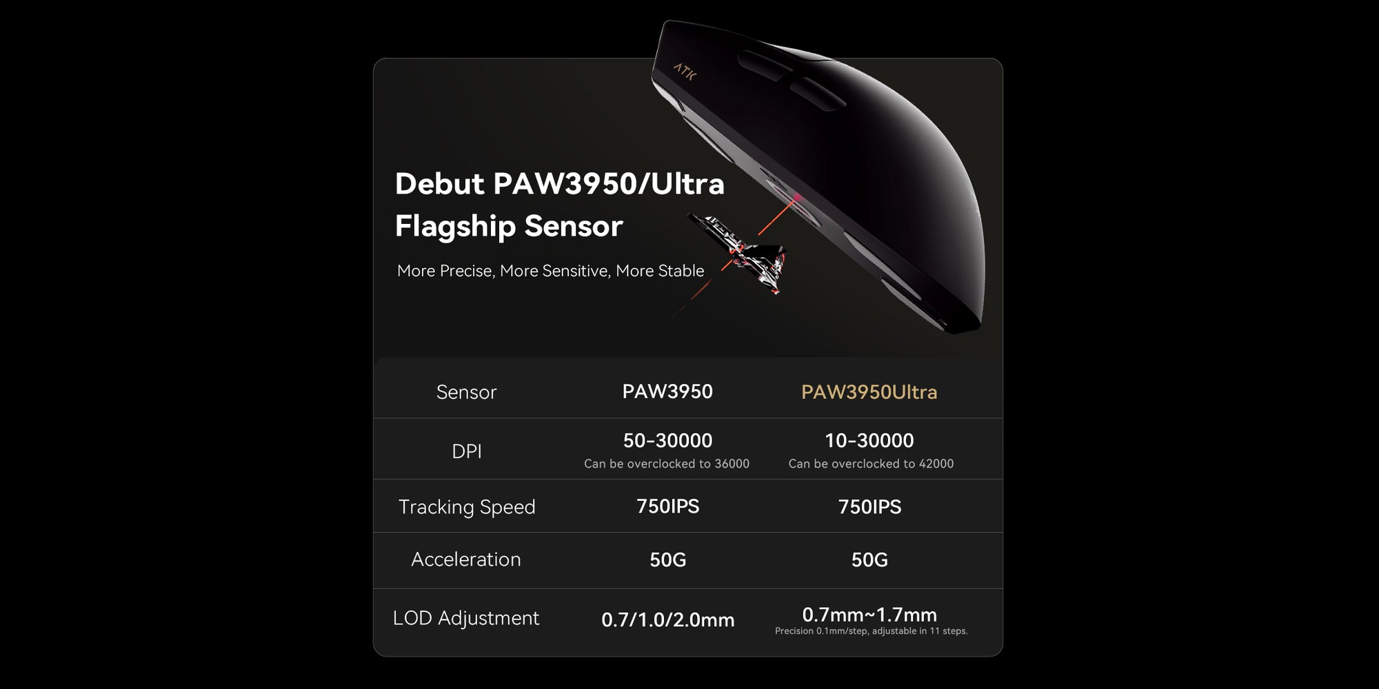 Cảm biến PAW3950/PAW3395, Polling rate 8KHz, Độ trễ thấp