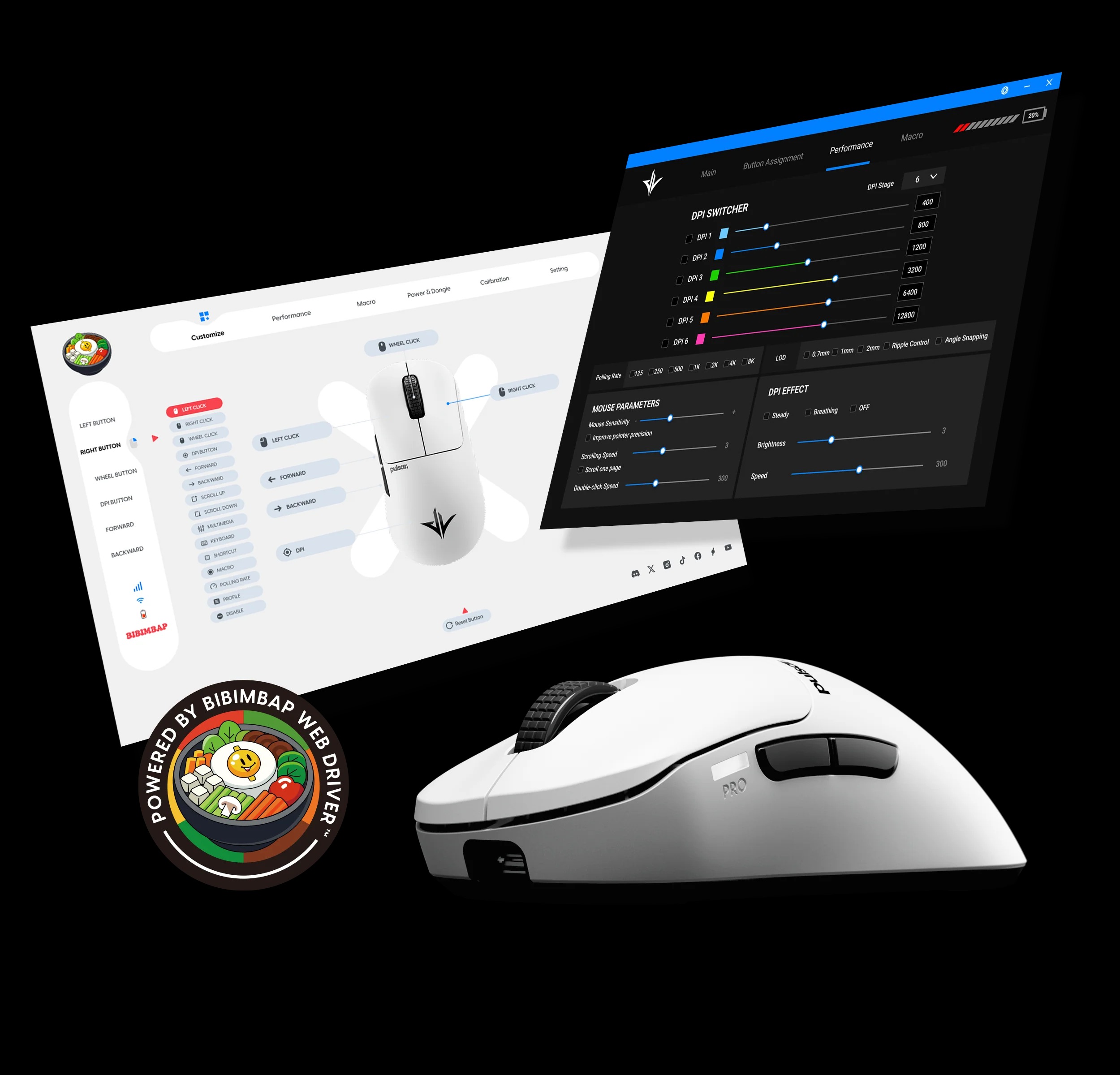 Điều chỉnh DPI và polling rate: DPI theo từng 10 đơn vị, polling rate lên đến 8K Hz cho hiệu suất tối ưu.