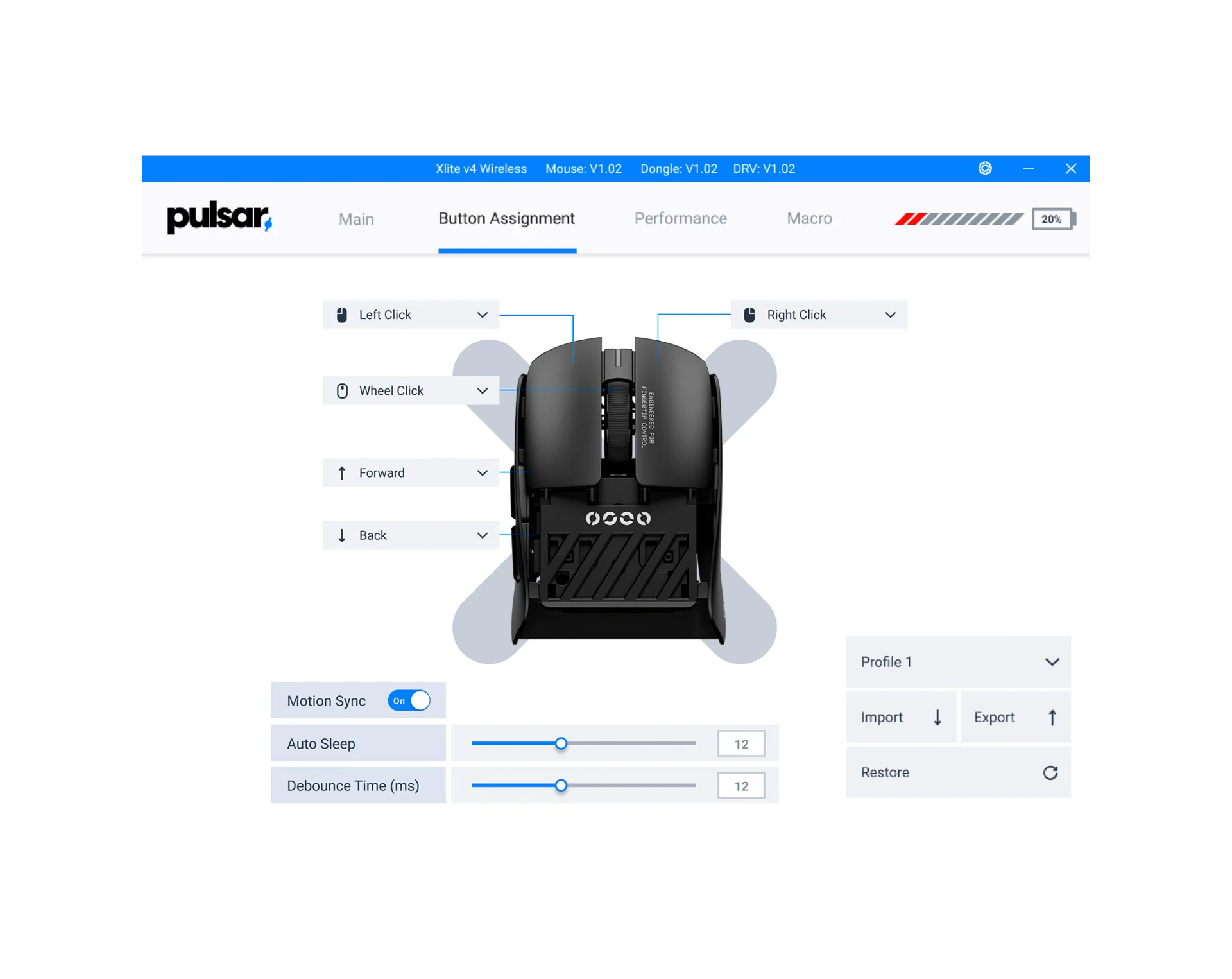 Tùy chỉnh nút và macro: Điều chỉnh đầy đủ qua Pulsar Fusion Software, hỗ trợ tùy chỉnh nút, macro phức tạp.