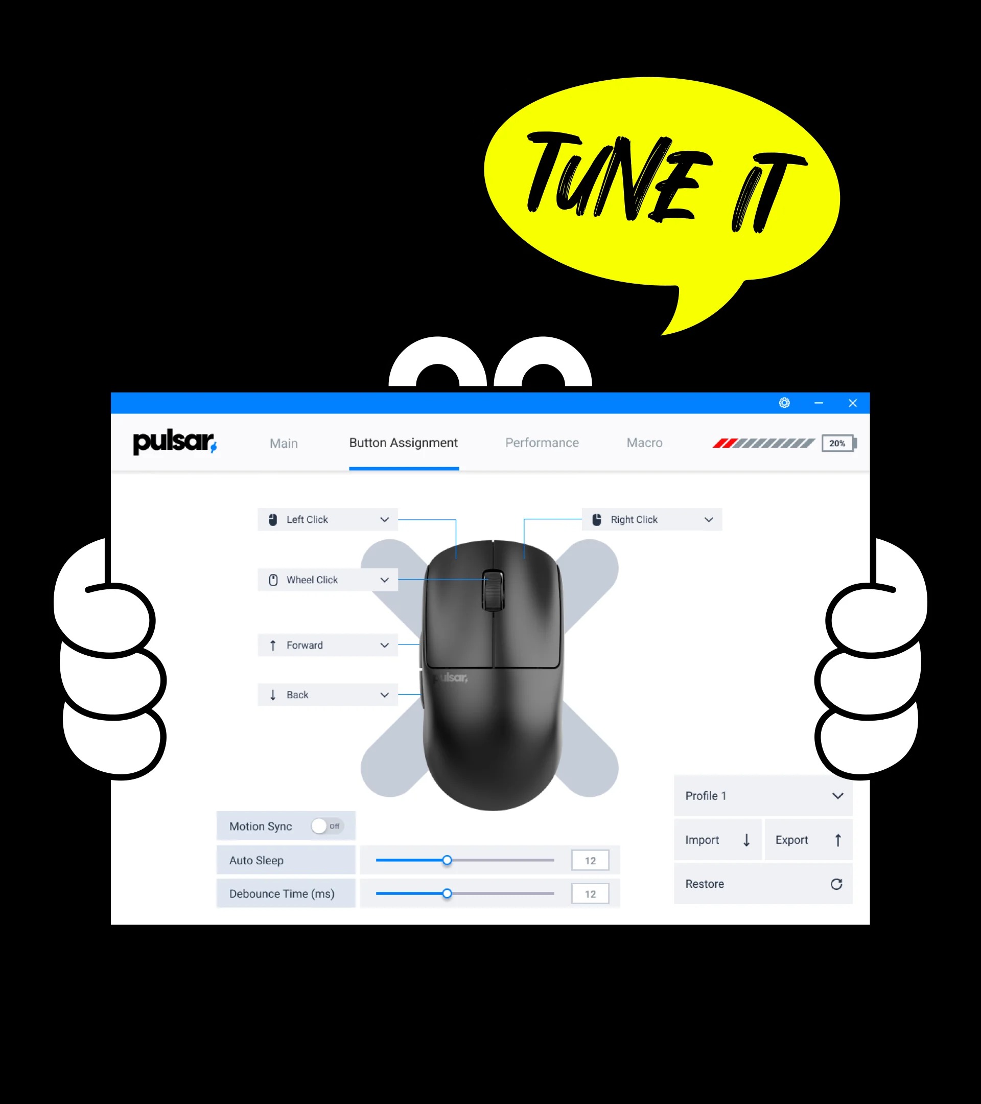 Để tối ưu hóa trải nghiệm, Pulsar X2 CrazyLight cho phép bạn tùy chỉnh LOD (Lift-Off Distance) với 3 mức: 2mm, 1mm và 0.7mm. Điều này giúp chuột hoạt động chính xác trên mọi bề mặt, từ bàn di chuột chuyên dụng đến mặt bàn thông thường. Bạn hoàn toàn có thể cá nhân hóa thiết bị để phù hợp với phong cách chơi game của mình.