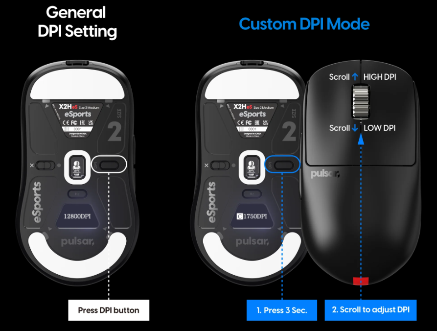 Game thủ có thể nhanh chóng điều chỉnh DPI trực tiếp bằng bánh xe cuộn thông qua màn hình OLED. Ngoài 6 mức DPI mặc định (400, 800, 1600, 3200, 6400, 12800), người dùng còn có thể tự cấu hình DPI chính xác theo từng mức tăng 50 đơn vị, phục vụ mọi nhu cầu chơi game từ FPS tốc độ cao đến chiến thuật đòi hỏi sự chính xác.