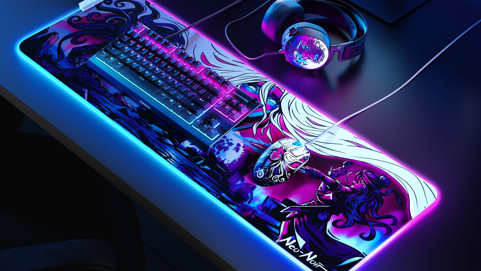 Nếu là một người chơi CS:GO lâu năm, chắc chắn bạn không thể không biết đến bộ skin vũ khí Neo-Noir siêu độc và vô cùng đẹp, và cũng rất đắt đỏ. Đây cũng chính là nguồn cảm hứng cho bộ Gaming gear mang phong cách Neo-noir ra đời.