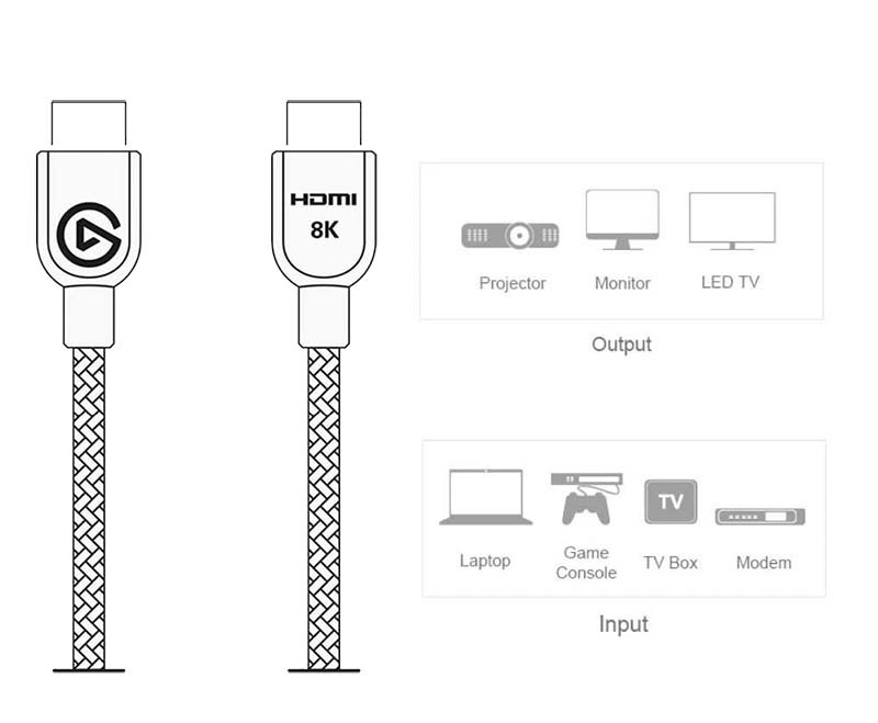 cáp HDMI v2.1 Elgato 10CAK9901 với tất cả các thiết bị sử dụng cổng HDMI như máy tính PC, máy tính xách tay, Set-Top box, màn hình, ti vi, máy chiếu, máy nghe nhạc, Xbox, PS4/ PS5...