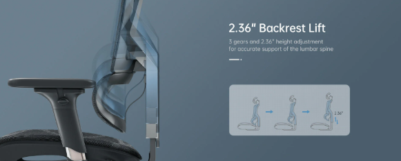 Được thiết kế tập trung 3 vị trí trên cột sống một cách khoa học: Cổ, ngực, thắt lưng. Tựa thắt lưng thiết kế dạng lưới để nâng đỡ cột sống thắt lưng của bạn. Với khả năng thay đổi lực tựa giúp phân bổ lực nâng đỡ cột sống vị trí này đem lại cảm giác dễ chịu khi ngồi kéo dài.
