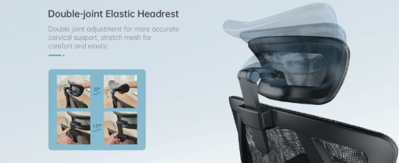 Thiết kế tựa đầu điều chỉnh được độ cao thấp 5 cấp độ, ngã về phía trước về sau giúp nâng đỡ trọng lượng của đầu và chia sẻ áp lực đốt sống cổ