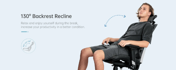 Bệ ngồi thiết kế cong đem lại cảm giác ngồi thoải mái. Thiết kế lưới thoáng đem lại cảm giác mát mẻ, dễ chịu. Bạn có thể ngồi lâu mà không thấy nóng hoặc khó chịu với thiết kế lưới thoáng thân thiện với da. Có thể cố định 3 vị trí ngả lưng để thư giãn. Các vị trí ngả lưng 102-112-130 độ