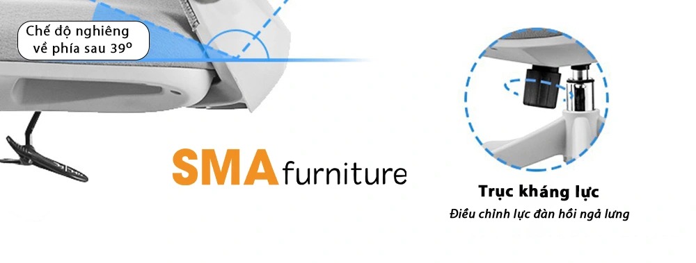 | Ngả lưng | Ghế công thái học SMA Tech-Z ngả lưng 120 độ, khóa đóng cố định vị trí ngồi làm việc 90 độ |