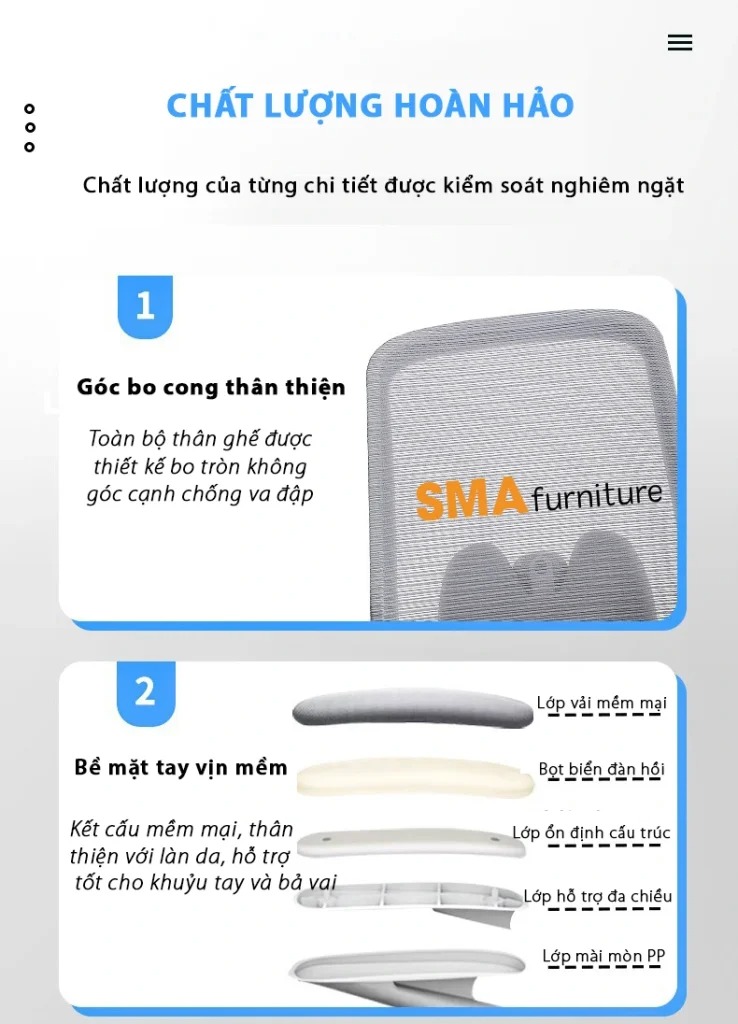 | Sản phẩm | Ghế công thái học SMA Tech-Z |