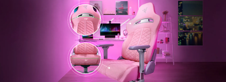 Thiết kế mặt đỡ vai mở rộng tới 110°, và đệm mông kích thước lên tới 54cm. Ghế chơi game Razer Enki đảm bảo thiết kế tối ưu cho việc ngồi chơi game thoải mái trong thời gian dài mà không sợ đau mỏi cơ.