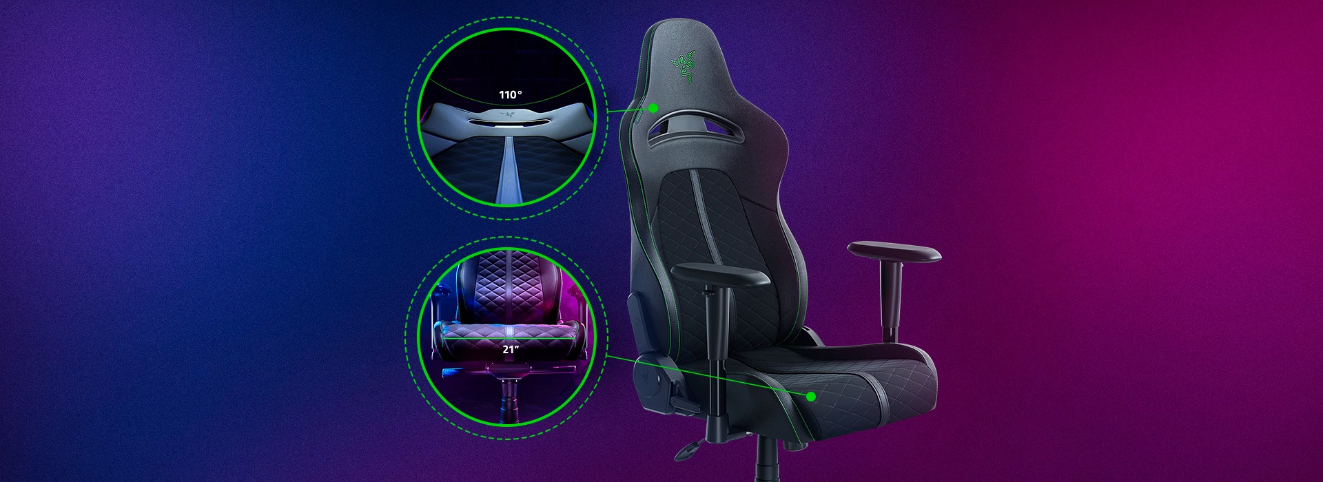 Enki X sở hữu tone màu xanh-đen đặc trưng của Razer cùng kiểu dáng tổng thể trông rất “đô con” và đậm chất game thủ. Nệm ghế dày đem lại cảm giác êm ái, phần ngả lưng được thiết kế đủ lớn để ôm trọn tấm lưng của người ngồi. Không thể thiếu lớp da vân rắn phần lưng ghế cùng kiểu dáng đua xe thời thượng làm cho mẫu gaming chair này thêm phần bắt mắt, toát đúng khí chất của Razer.