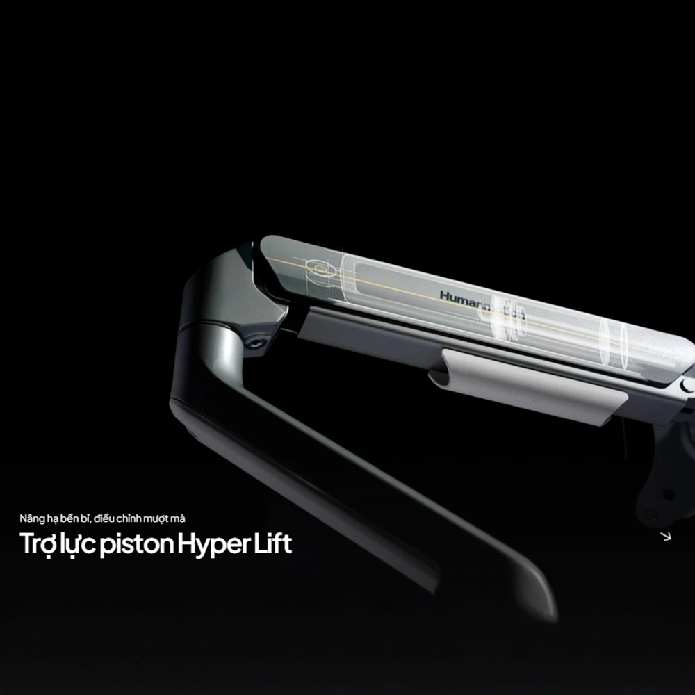Điểm khác biệt lớn nhất của T6 Pro 2025 nằm ở hệ thống lò xo trợ lực Piston Hyper Lift. Thay vì cảm giác nặng nề khi điều chỉnh, bạn có thể thay đổi độ cao màn hình chỉ với một tay. Sự êm ái và ổn định của hệ thống này giúp màn hình luôn đứng vững tại vị trí mong muốn mà không bị tình trạng "trôi" hay rung lắc.