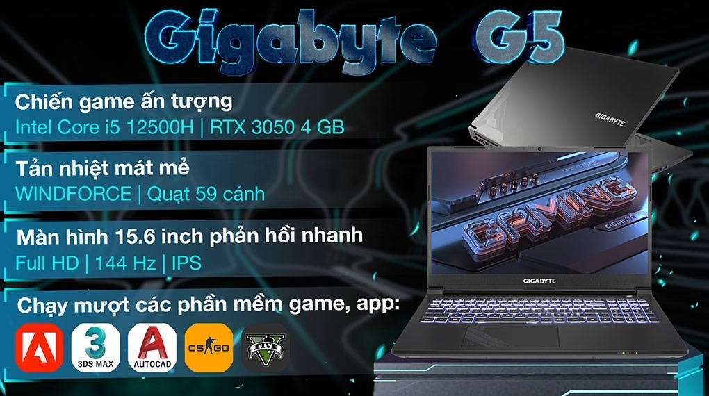 Laptop Gigabyte Gaming G5 i5 12500H (GE-51VN263SH) 8GB/512GB/15.6"FHD/RTX3050 4GB/Win11