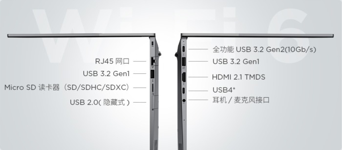 Cổng kết nối Thunderbolt 4, HDMI 2.1, USB-C PD, Audio jack, SD card reader