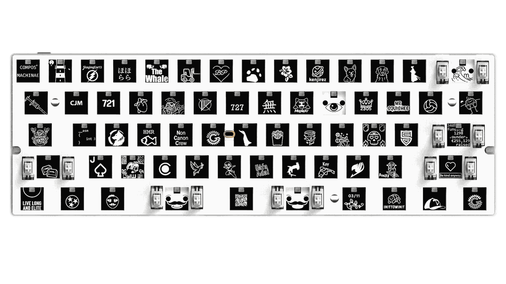 Universal 60% size PCBA tương thích tray mount/friction fit/custom case như Wooting Alumaze60 hoặc third-party aluminum cases. White polycarbonate switch plate, silicone/Poron sandwich pad cho sound dampening, EPDM foam cho aluminum cases, mang lại âm thanh creamy thocky tùy build.