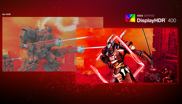 DisplayHDR 400 được chứng nhận VESA mang đến một bước tiến đáng kể so với hiển thị SDR thông thường. Không giống như các màn hình 'tương thích HDR' khác, DisplayHDR 400 thực sự tạo ra độ sáng, độ tương phản và màu sắc đáng kinh ngạc. Độ sáng cao nhất lên đến 400 nits, hình ảnh sống động với những điểm nổi bật đáng chú ý khi có màu đen sâu hơn, sắc thái hơn. Nó kết xuất một bảng màu đầy đủ hơn với các màu mới phong phú, mang lại trải nghiệm hình ảnh thu hút các giác quan của bạn.