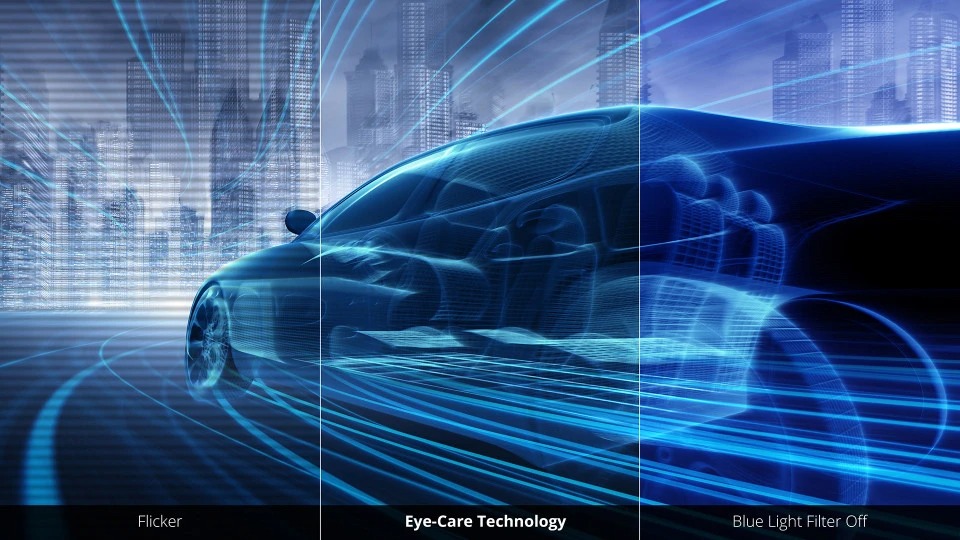 Công nghệ Flicker-Free và bộ lọc ánh sáng xanh giúp loại bỏ căng thẳng mắt do việc nhìn màn hình trong thời gian dài.