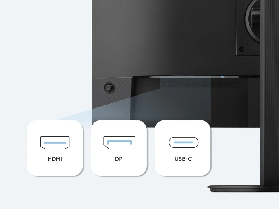 Cổng USB-C hỗ trợ truyền dữ liệu 10Gbps và sạc Power Delivery 65W, cho phép sạc laptop chỉ với một cáp. Kết nối đa dạng: 2x HDMI 2.0, DisplayPort 1.2, USB-C upstream, 2x USB 3.2 downstream, jack tai nghe 3.5mm, mang lại sự tiện lợi cho setup đa thiết bị.
