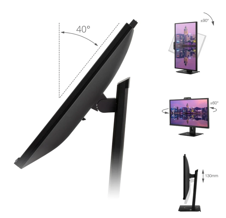 Dễ dàng xoay màn hình lên đến 120 độ, nghiêng đến 40 độ, nâng màn hình lên đến 130mm hoặc xoay 90 độ để xem nội dung hiển thị dọc. VG2740V cung cấp đầy đủ các tính năng linh hoạt về công thái học cho mọi tác vụ và quy trình làm việc.
