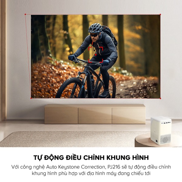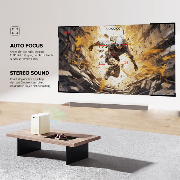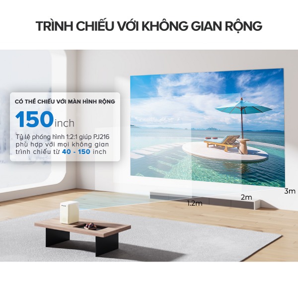 Màn chiếu từ 40-300 inch, tỷ lệ chiếu 1.35:1, khoảng cách chiếu linh hoạt. Hỗ trợ keystone ±40° tự động/chỉnh tay, zoom 50-100%, mang lại hình ảnh cân chỉnh dễ dàng dù đặt ở góc phòng.