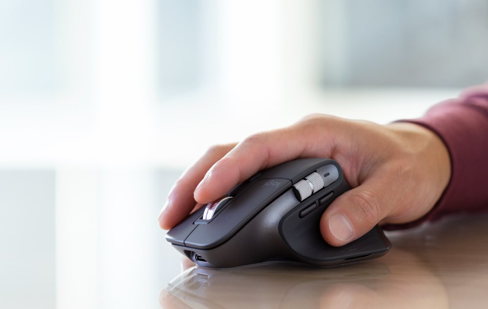 Form cầm của dòng MX Master vẫn là một trong những thiết kế thoải mái nhất dành cho người làm việc văn phòng lâu năm. Chuột ôm trọn lòng bàn tay, phần nghỉ ngón cái được thiết kế khoa học, giúp giảm mỏi đáng kể sau nhiều giờ sử dụng liên tục.
