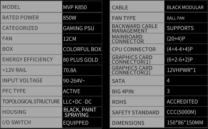 | Thiết kế | Semi-modular, ATX 12V v2.52 |