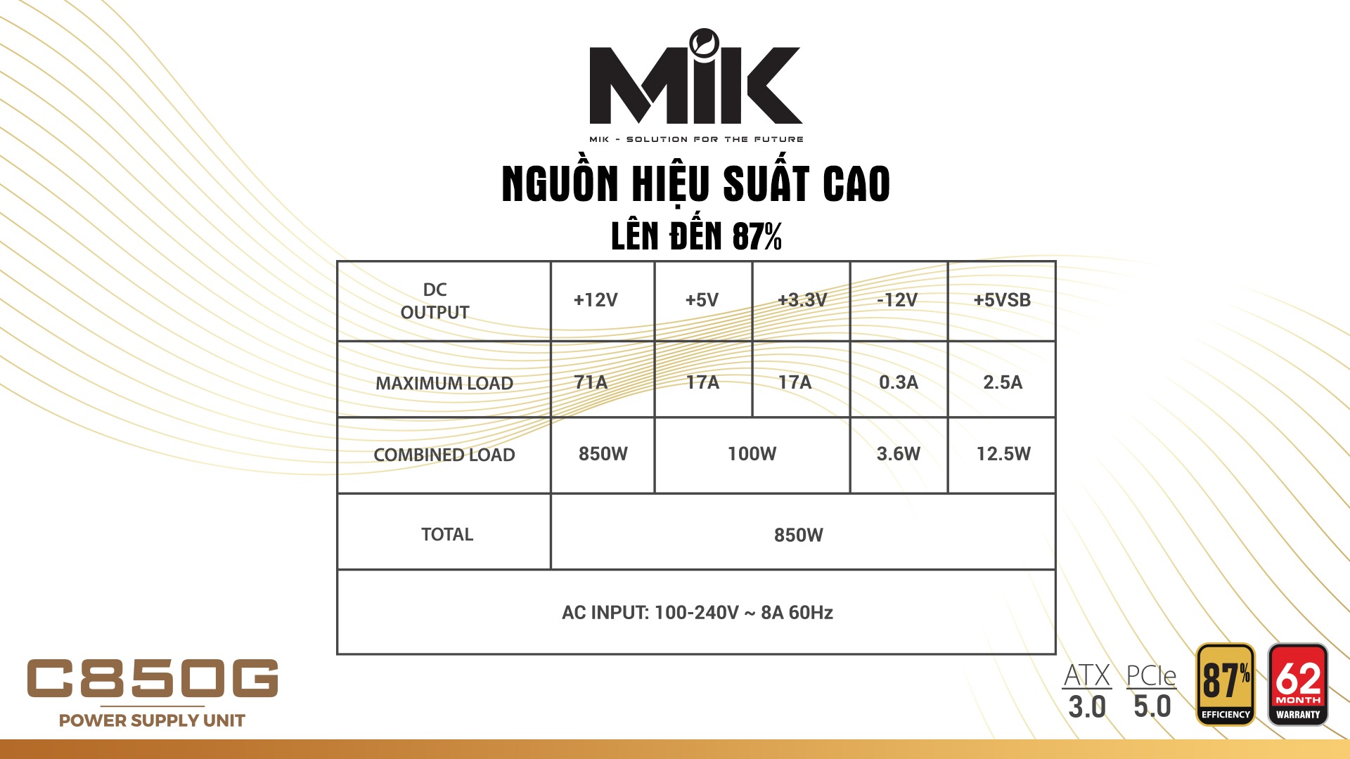 Công suất thực 850W - Active PFC