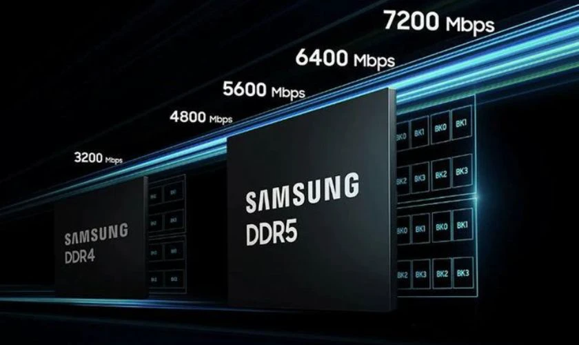 Băng thông bộ nhớ cũng được cải thiện đáng kể. Với số lượng kênh bộ nhớ tăng gấp đôi từ 2 (trên DDR5) lên 4 (trên DDR6) và số memory bank tăng từ 32 lên 64, DDR6 mang lại băng thông tối đa lên đến 134.4 GB/s, gấp đôi so với DDR5 (67.2 GB/s). Điều này đặc biệt hữu ích cho các tác vụ đòi hỏi băng thông lớn như xử lý đồ họa 3D, AI, và dựng hình video.