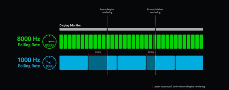 Theo các bài kiểm tra từ Tech4Gamers, polling rate 8K đã cải thiện hiệu suất lên 20% so với 1K, và 16K có thể đẩy con số đó cao hơn nữa – dù lợi ích thực tế phụ thuộc vào setup tổng thể.