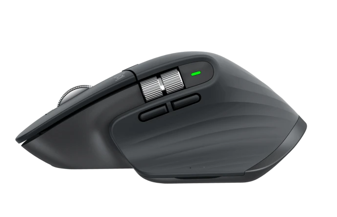 Bánh xe MagSpeed electromagnetic scroll nhanh gấp 1000 dòng/giây, chuyển chế độ ratchet/free-spin tự động. Nút bấm Quiet Clicks giảm tiếng ồn 90% so với MX Master 3, thoải mái làm việc trong môi trường văn phòng yên tĩnh.