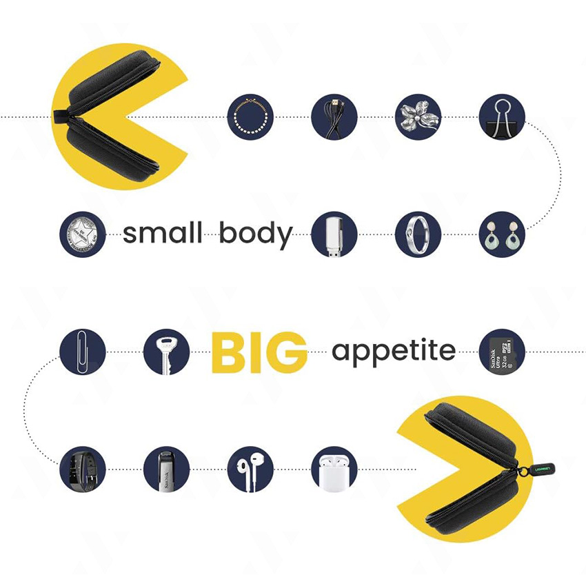 Hộp nhựa đựng tai nghe Ugreen 70576 là sản phẩm phụ kiện lưu trữ đa năng, được thiết kế để bảo vệ tai nghe, earbuds và các phụ kiện nhỏ khỏi va chạm, nước và bụi bẩn. Với chất liệu EVA cứng chống sốc, lớp lót mềm bên trong và kích thước nhỏ gọn, hộp này là lựa chọn lý tưởng cho người dùng di động, giúp tổ chức và bảo quản tai nghe AirPods, Bluetooth earbuds hoặc các vật dụng nhỏ như USB, thẻ nhớ một cách an toàn.