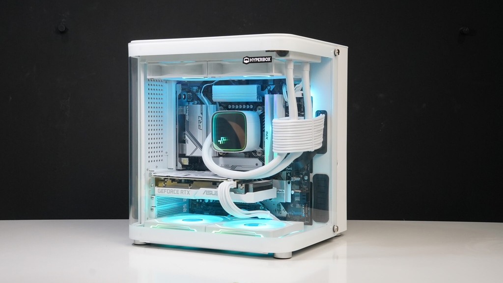 Thiết kế trắng bạc sang trọng: Case Jonsbo TK-1 2.0, VGA Asus trắng và RGB từ RAM tạo setup gaming đẳng cấp, hiện đại.