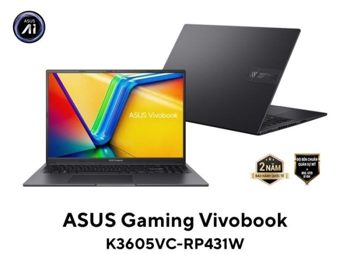 Laptop ASUS Gaming Vivobook K3605VC-RP431W là mẫu máy tính xách tay đa năng mới nhất 2025 thuộc dòng Vivobook Gaming với cấu hình Intel Core i5-13420H, RTX 3050 và màn hình 16 inch FHD+ 144Hz, mang lại sự kết hợp hoàn hảo giữa thiết kế mỏng nhẹ thời trang và hiệu năng chơi game ổn định ở mức giá cực kỳ hấp dẫn chỉ khoảng 20-23 triệu đồng tại Việt Nam. Máy sở hữu vỏ nhôm màu Indie Black hoặc Cool Silver sang trọng, viền siêu mỏng chỉ 7.9mm hai bên, logo Vivobook khắc laser tinh tế, bản lề ErgoSense mở 180 độ và trọng lượng chỉ khoảng 1.8kg dày dưới 1.9cm giúp dễ dàng bỏ balo mang đi học, đi làm hoặc đi cà phê mà trông giống laptop văn phòng cao cấp chứ không hầm hố như ROG hay TUF. Bàn phím chiclet backlit trắng với hành trình phím 1.4mm, khoảng cách phím tối ưu và lớp phủ kháng khuẩn ASUS Antimicrobial Guard mang lại cảm giác gõ êm ái, chính xác khi làm việc dài giờ hoặc chơi game nhẹ nhàng. Touchpad lớn phủ kính hỗ trợ đa điểm và Smart Gesture, hệ thống loa Harman Kardon cho âm thanh trong trẻo, bass ấm, xem phim Netflix hay nghe nhạc Spotify đều đã tai hơn hẳn các dòng gaming bình dân.